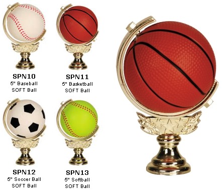Please click on the images for a larger view. Approximately 12.5" total height with a soft spinning ball, size varies depending on which figurine you choose. Price includes standard engraving of 3 lines,white marble base, and your choice of column.