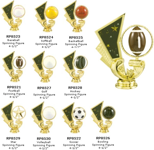 Please click on the images for a larger view. Approximately 11" total height with a spinning figure, size varies depending on which figurine you choose. Price includes standard engraving of 3 lines, 16 characters each, white marble base, and your choice of column.